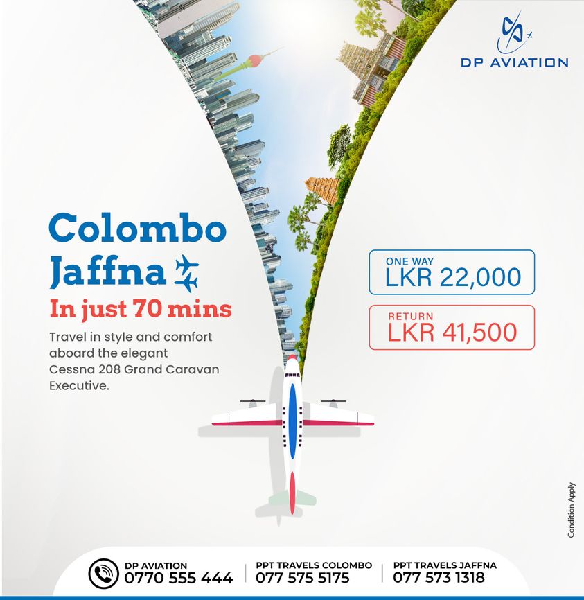 A Cessna 208 Grand Caravan, which has a seating capacity for 13 passengers and a pilot will be used on the route. The flight duration to Jaffna from Ratmalana will be 70 minutes. Flights for the route are scheduled for Saturday, Sunday, Tuesday, and Thursday. One way ticket is priced at Rs.22,000, and the round trip at Rs. 41,500 (introductory offer).