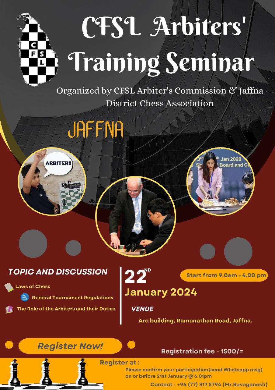 • Chess Federation of Sri Lanka Arbitrators Training, 21st January