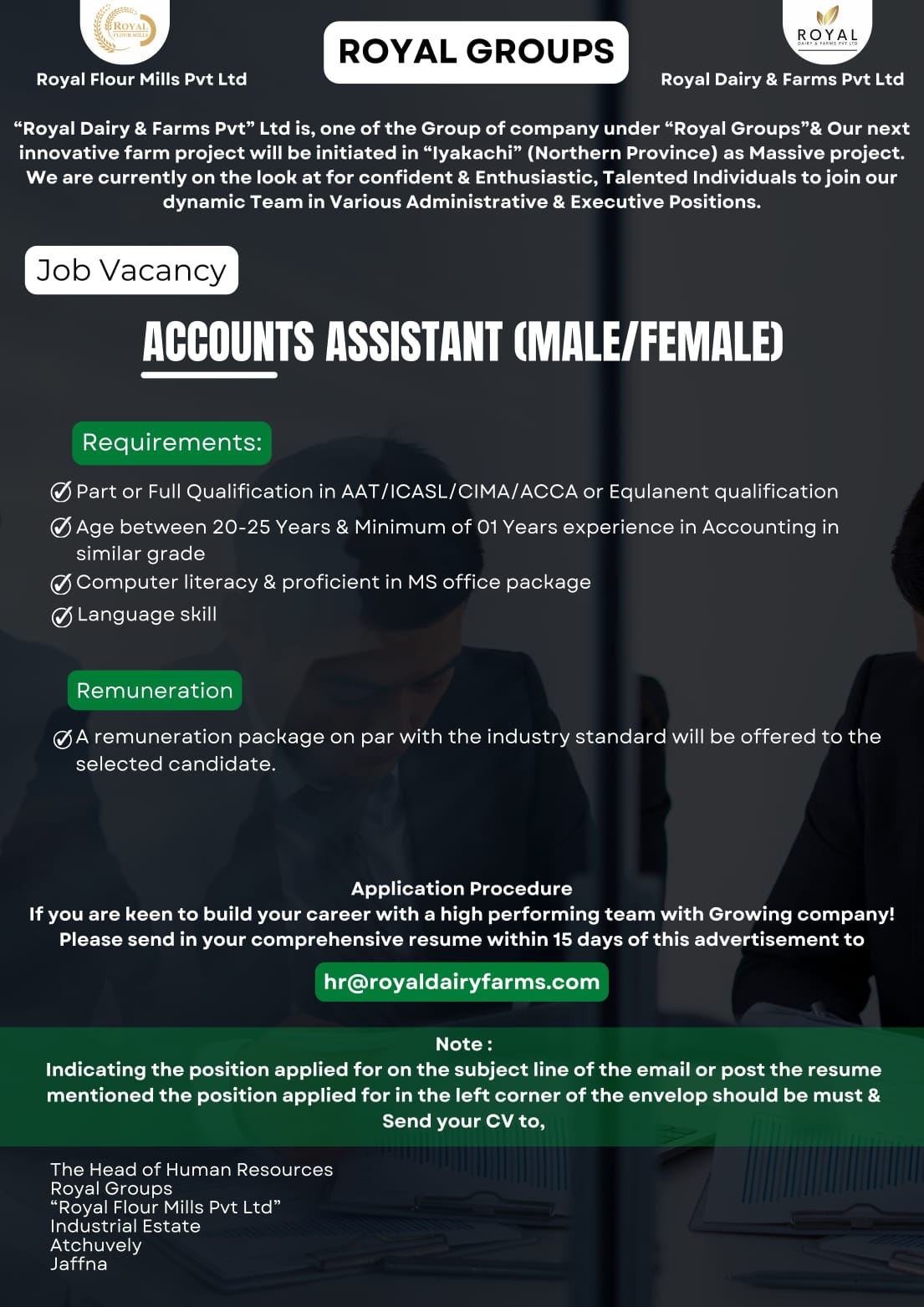 • Royal Groups Jaffna seeks Accounts Assistant, Feb 2024