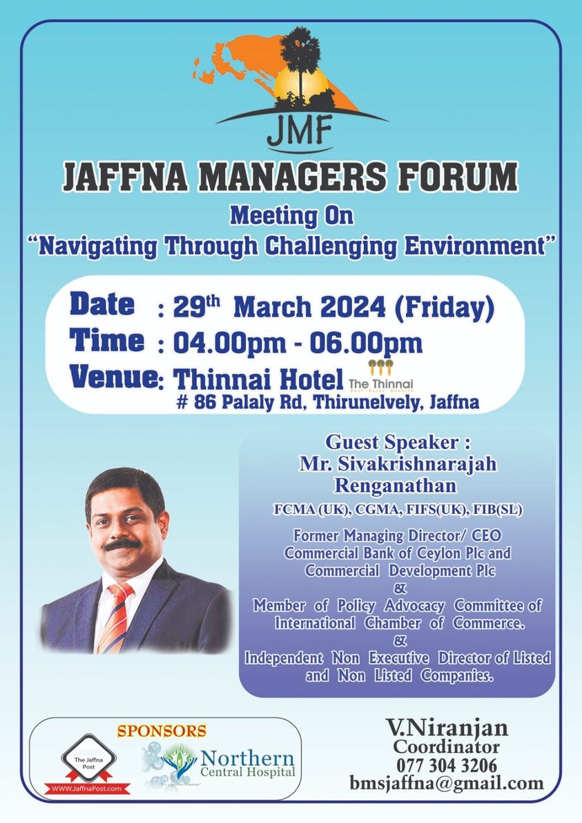 Jaffna Managers’ Forum, S.Renganathan former CEO Commercial Bank, 29th March