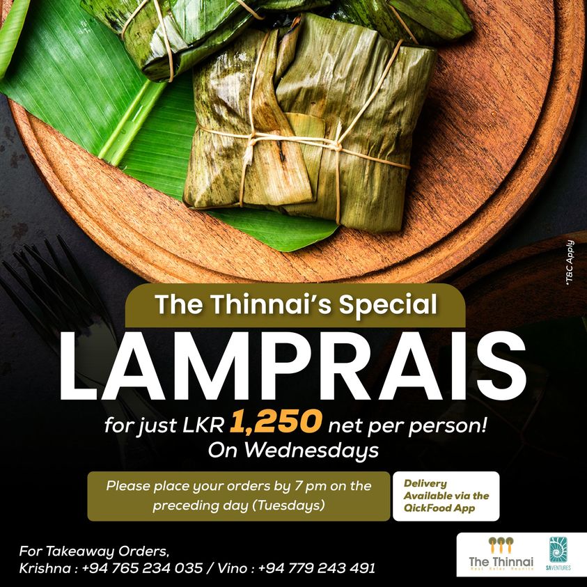 Dive into the mouthwatering world of Dutch Burgher cuisine with our Special Lamprais at The Thinnai, perfect for a delicious lunch every Wednesday!